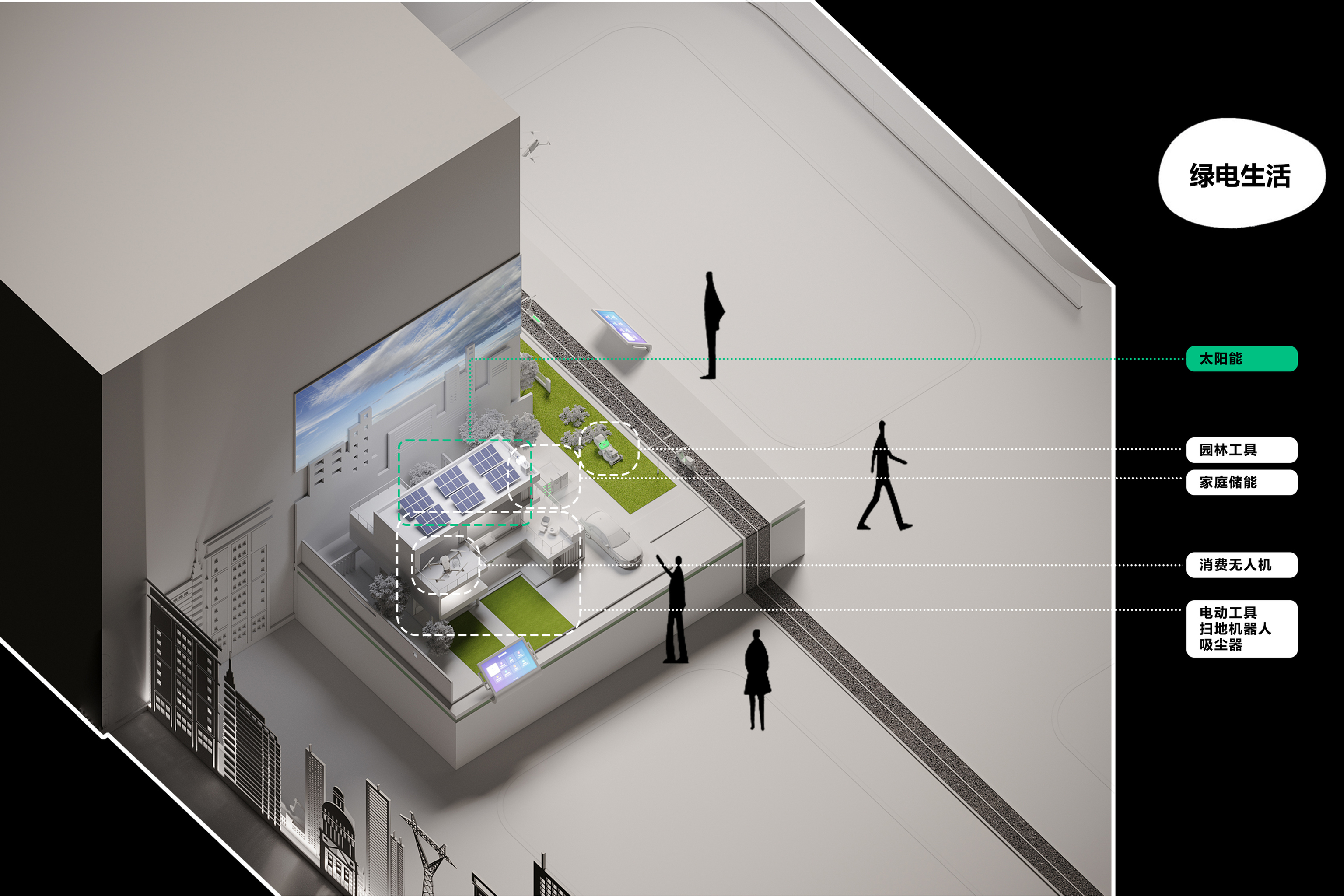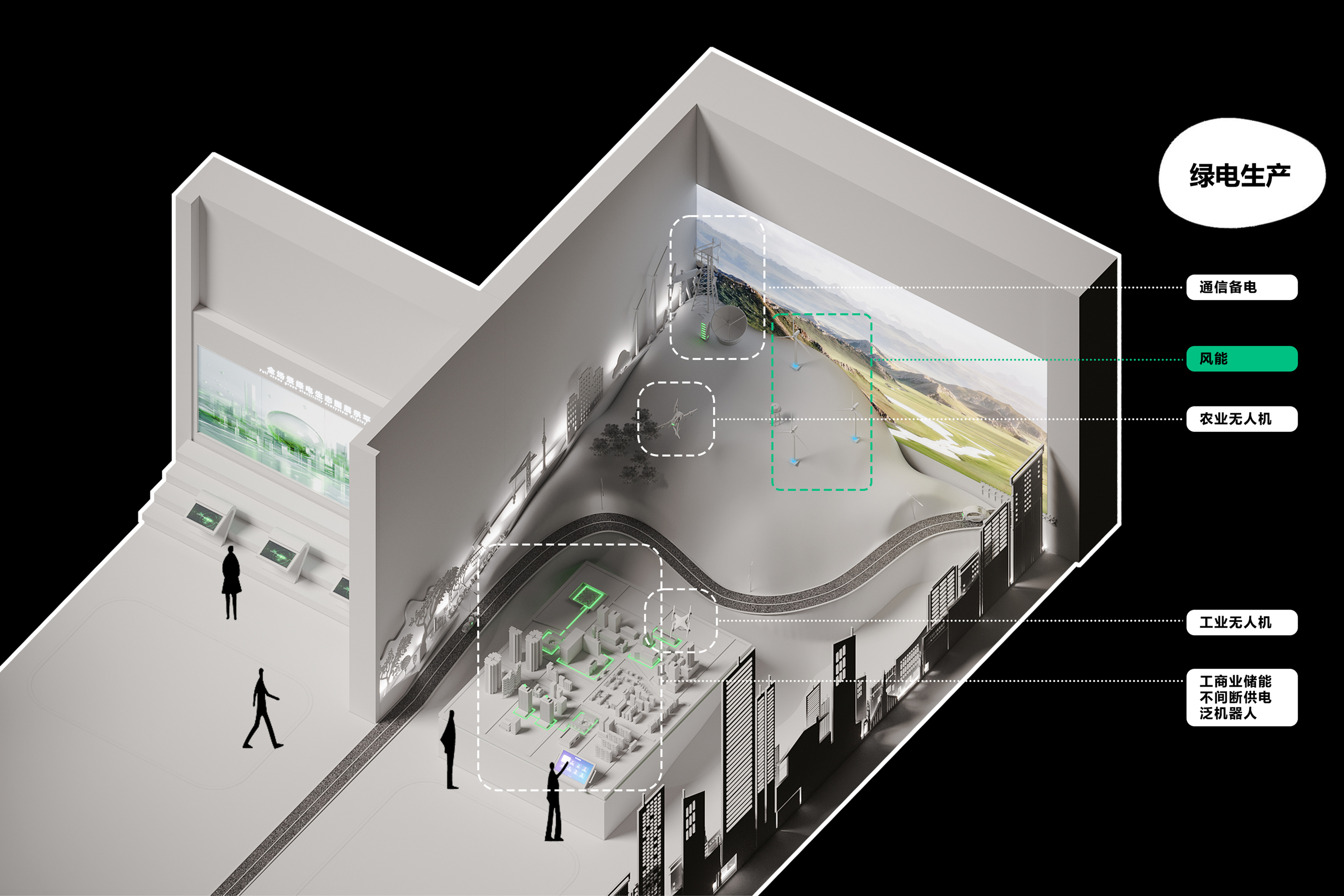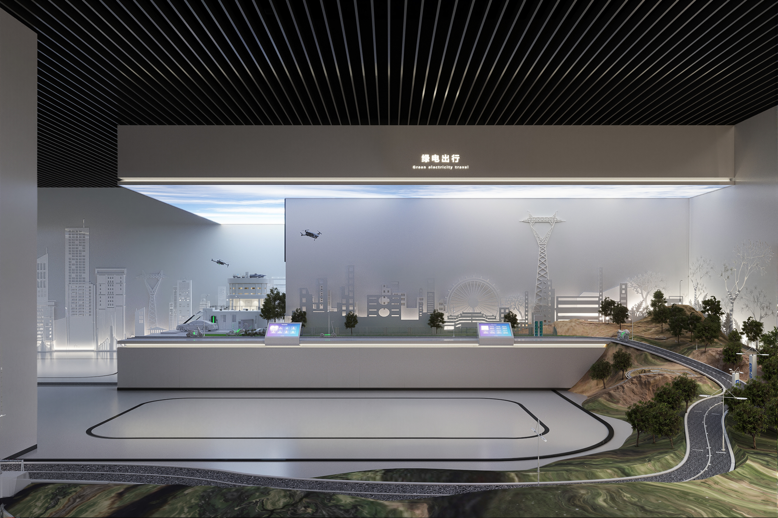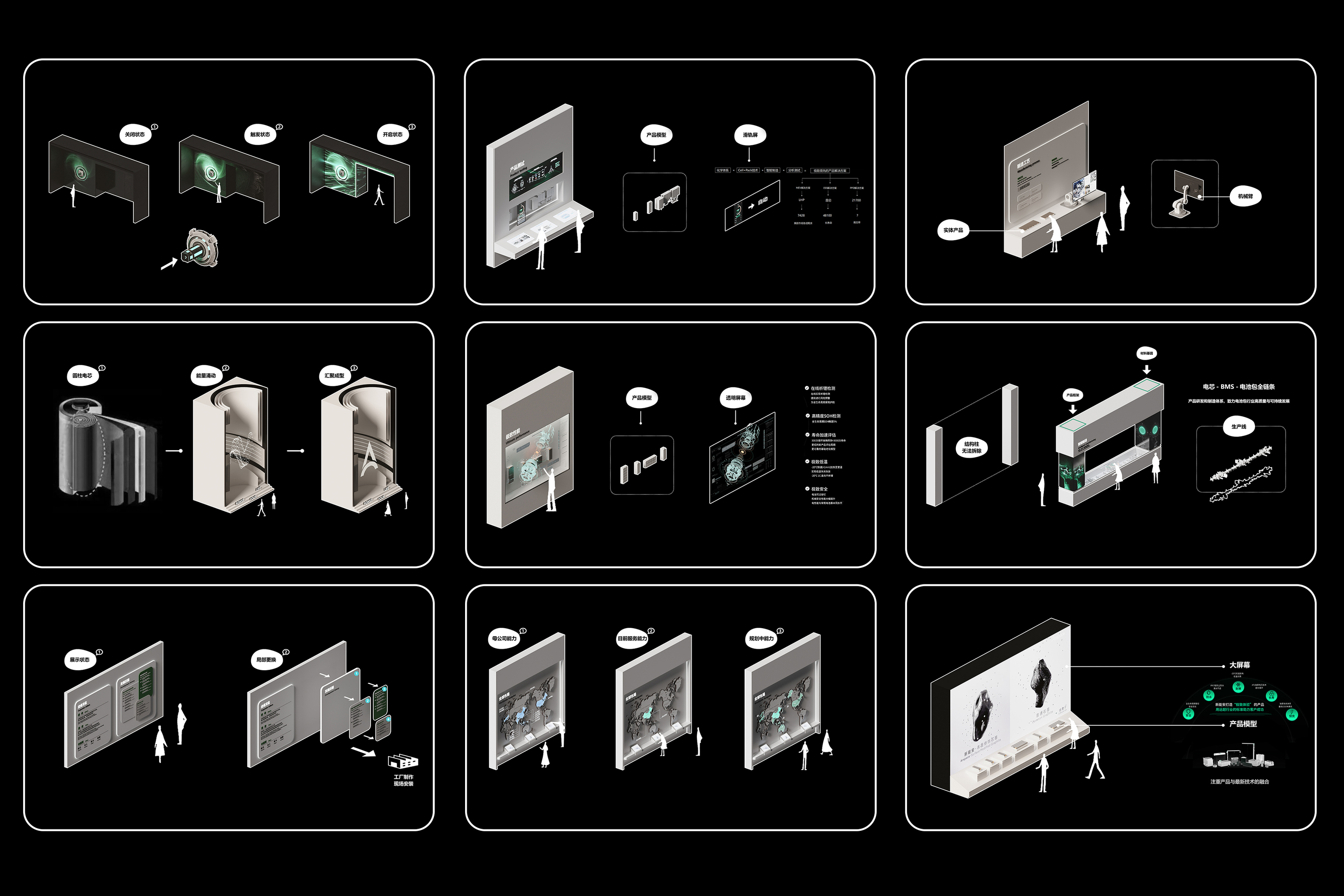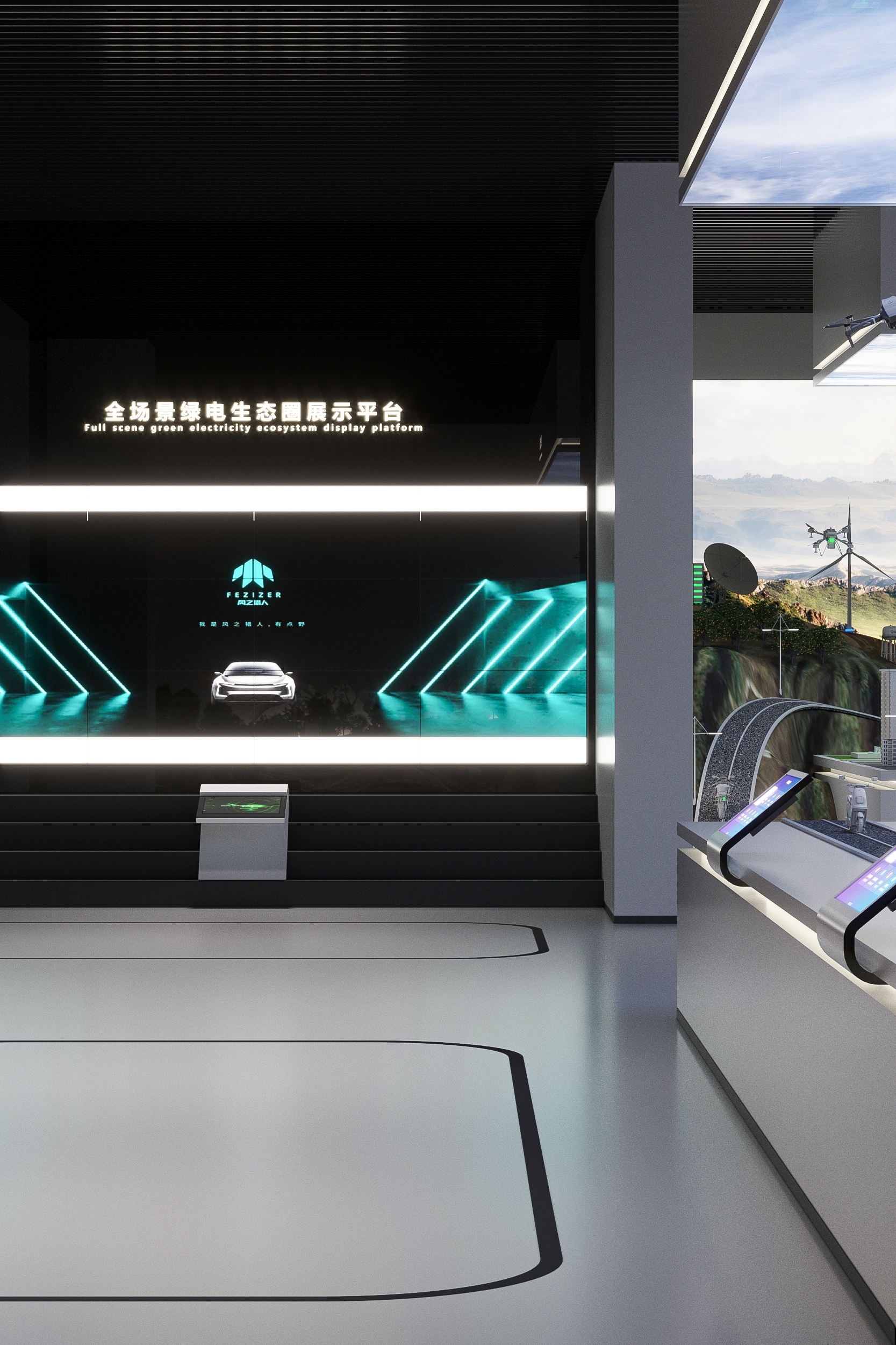 作为全球知名锂电池供应商——ATL与CATL的合资公司,新能安专注高端锂电池的研究与创新,聚焦储能系统、微型车、智能产品驱动电池等三大领域的研发、生产、销售与服务。以极致用户体验的绿色能源解决方案,助力能源转型,赋能美好生活。本次展厅设计项目的核心是“全场景绿电生态圈”的构建。展厅分为两层,总面积770平方米,以展示新能安在绿色能源领域的技术创新与发展历程为主线,设计不仅服务于品牌推广、实力展示和商务合作的需求,更通过全新的展陈理念,塑造了一个能够引发深刻思考、激发对话与合作的平台。